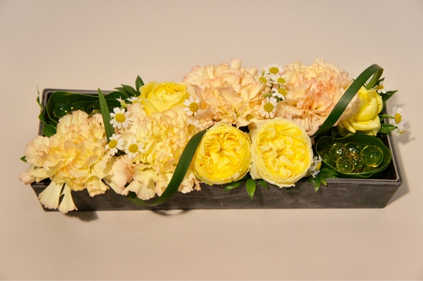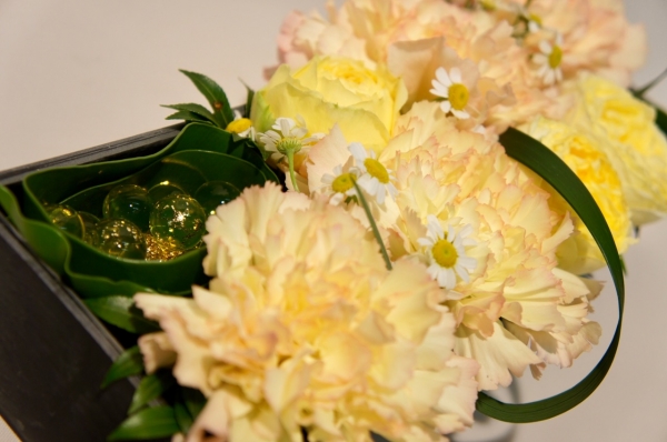 元気な黄色系のお花でまとめたアレンジです。