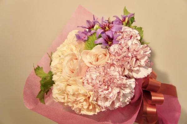 ありがとうの気持ちを優しい色のお花で包んだブーケ。