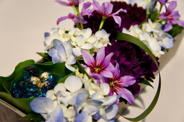 シックなブルー、バイオレット系のお花でまとめたアレンジです。