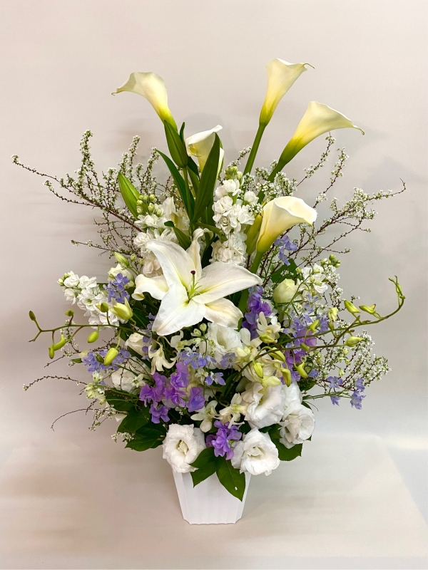 白を基調としたスタンダードなお供えアレンジです。