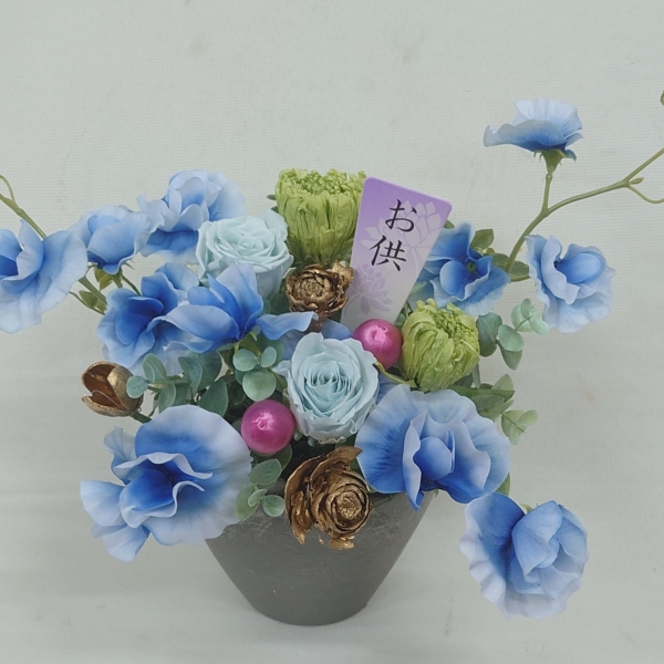 高級造花【商品番号f-56】仕事運アップのブルーのアレンジ